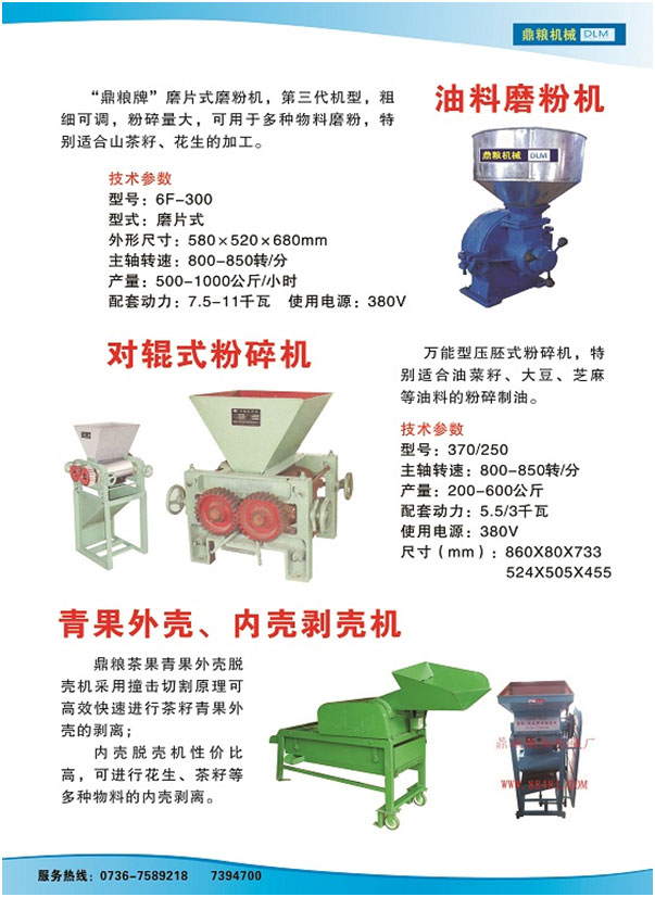 對(duì)輥式粉碎機(jī),又叫軋胚機(jī),是同榨油機(jī)相配套設(shè)備,該機(jī)能將油料或者其他物料軋成薄片和壓成粉末。適用于傳統(tǒng)制取植物油脂,也可用于糧食作物制粉的加工和化學(xué)物質(zhì)的制粉工藝。用戶可根據(jù)其工作原理,拓寬使用范圍